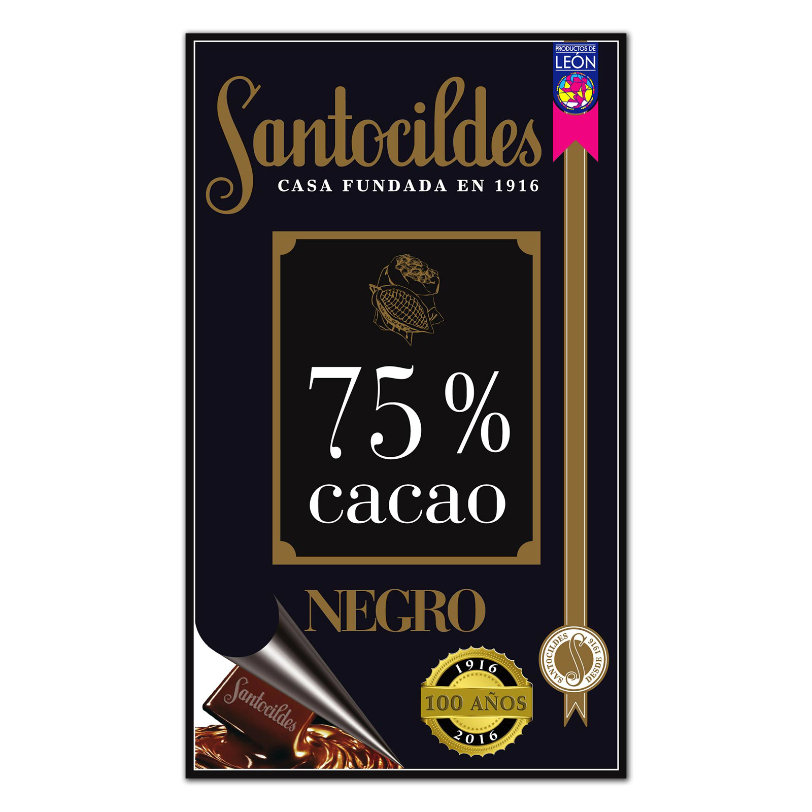 Chocolate Negro 75% Cacao 200 grs. Para aquellos que quieren beneficiarse de las propiedades saludables del cacao sin demasiado amargor.